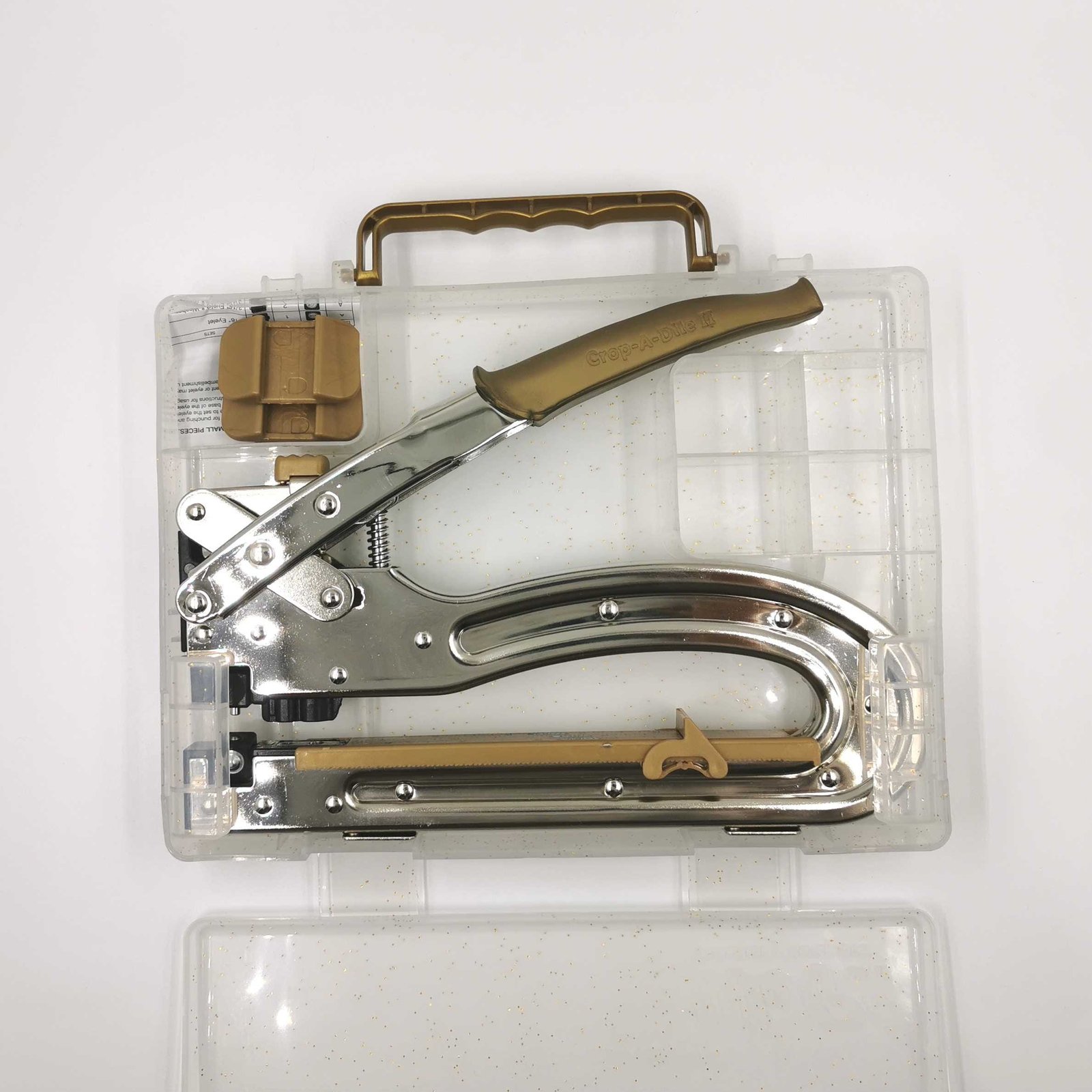 Die Loch- und Ösenzange ist in der Farbe Gold oder Hellblau erhältlich.