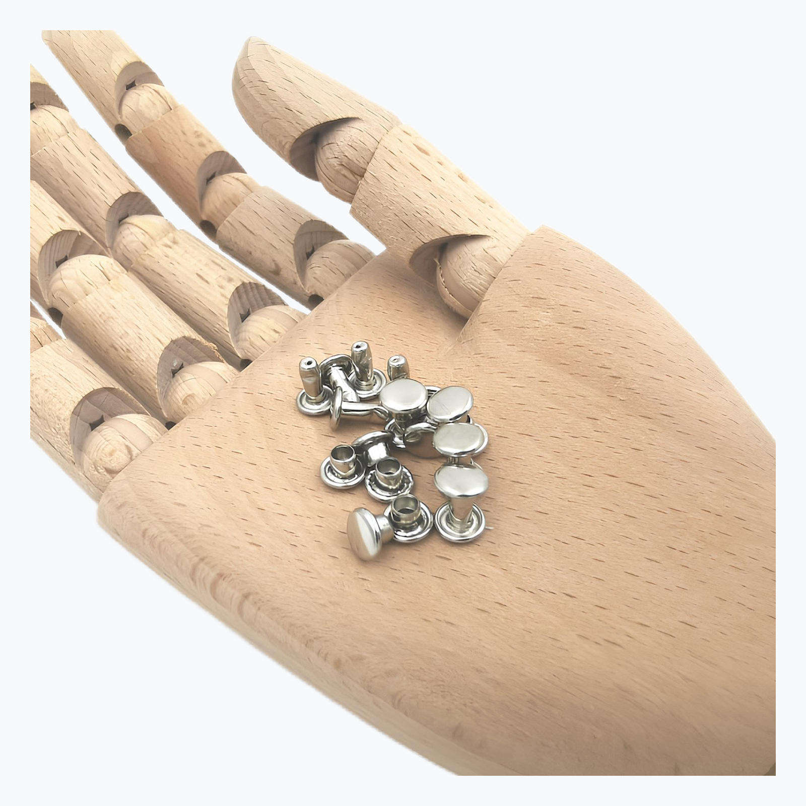 Die Nieten 9 mm werden bei 3,2 mm dicken thermoplastischen Material verwendet, um gelenkige Verbindungen herzustellen. Diese werden z.B. bei Quengelschienen oder Führungsschienen (wie bei einer Halux valgus Schiene oder einer Variante der Antiulnardeviationsspange) verwendet.